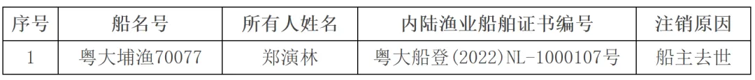 为加强渔业船舶管理,根据《中华人民共和国渔业船舶登记办法》和《广东省渔港和渔业船舶管理条例》规定,拟对以下持证人持有的《内陆渔业船舶证书》(含渔业捕捞许可证)进行注销公告,时间为2026年3月18日至2026年4月16日。