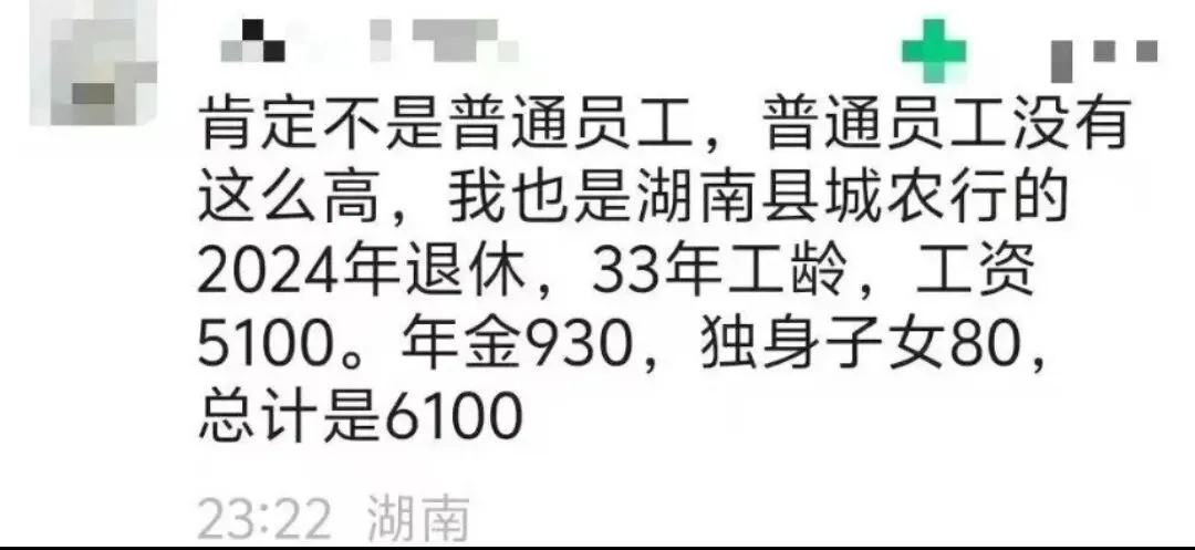 一位湖南县城农行大姐的真实留言,她在农行踏踏实实干了整整33年,2024年正式办理退休。如今每个月到手的收入,包括基本养老金、企业年金,再加上独生子女补贴,加在一起一共6100元。这个数字一出来,很多人第一反应是意外,甚至有点不敢相信:在银行干了一辈子,还是国有大行,退休金怎么才六千出头?
