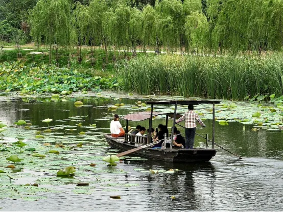乘渔船穿梭于芦苇荡与荷塘之间,河面上,鸬鹚在欢快地迎接游客。湖心岛上是沿湖村的“星空露营”地。围绕“精致露营”主题,沿湖村于去年推出了湖心岛轻奢露营项目。在这里,游客们除了看风景、吃鱼鲜、体验渔家生活,还可以体验民谣演奏、帐篷、篝火、露天电影、户外烧烤等新项目,尽享一刻“逃离”都市的闲散惬意。立足生态资源禀赋,“点绿成金”,2023年,沿湖村接待游客30万人次、参观团队450余个,实现旅游收入3200万元,带动村民400多人就业、人均收入突破3.5万元。