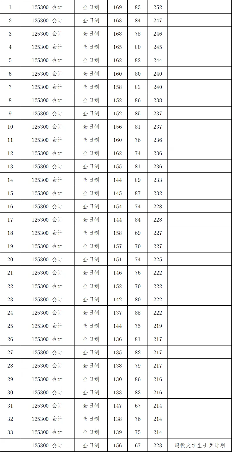 2026年华南农业大学会计硕士复试线214分,普通考生共33人过线,预招25人,其中: