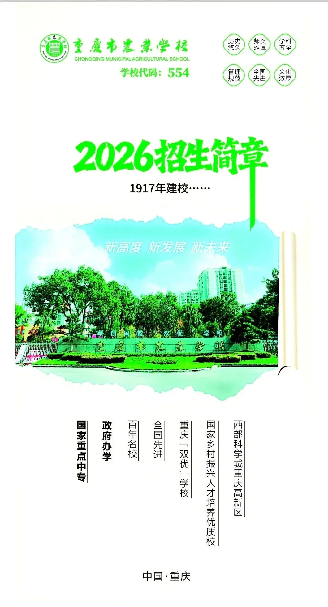 重庆市农业学校2026年招生简章已定稿,2026年春季招生正在报名中,欢迎有意向的的家长、同学咨询了解!