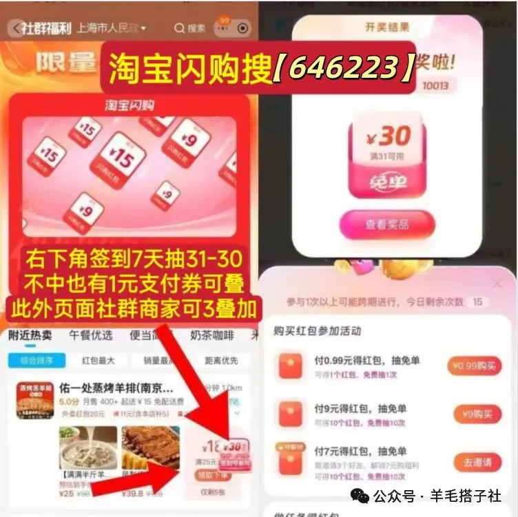 现在群限时开放,无需做任务直接进实时羊毛线报群!