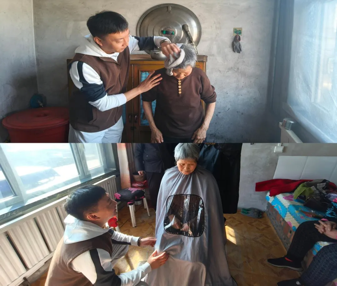 活动开展前,工作队逐户摸排,建立服务需求台账,重点锁定70岁以上、行动不便等特殊群体。针对特殊群体,工作队坚持“暖心、便民”原则,提供上门剪发服务,携带理发工具走进村民家中,耐心细致地为老人们修剪头发。理发过程中,伴随着细碎的剪刀声,工作队与老人们亲切交谈,在轻松欢快的氛围中,倾听着老人们“过去的故事”。