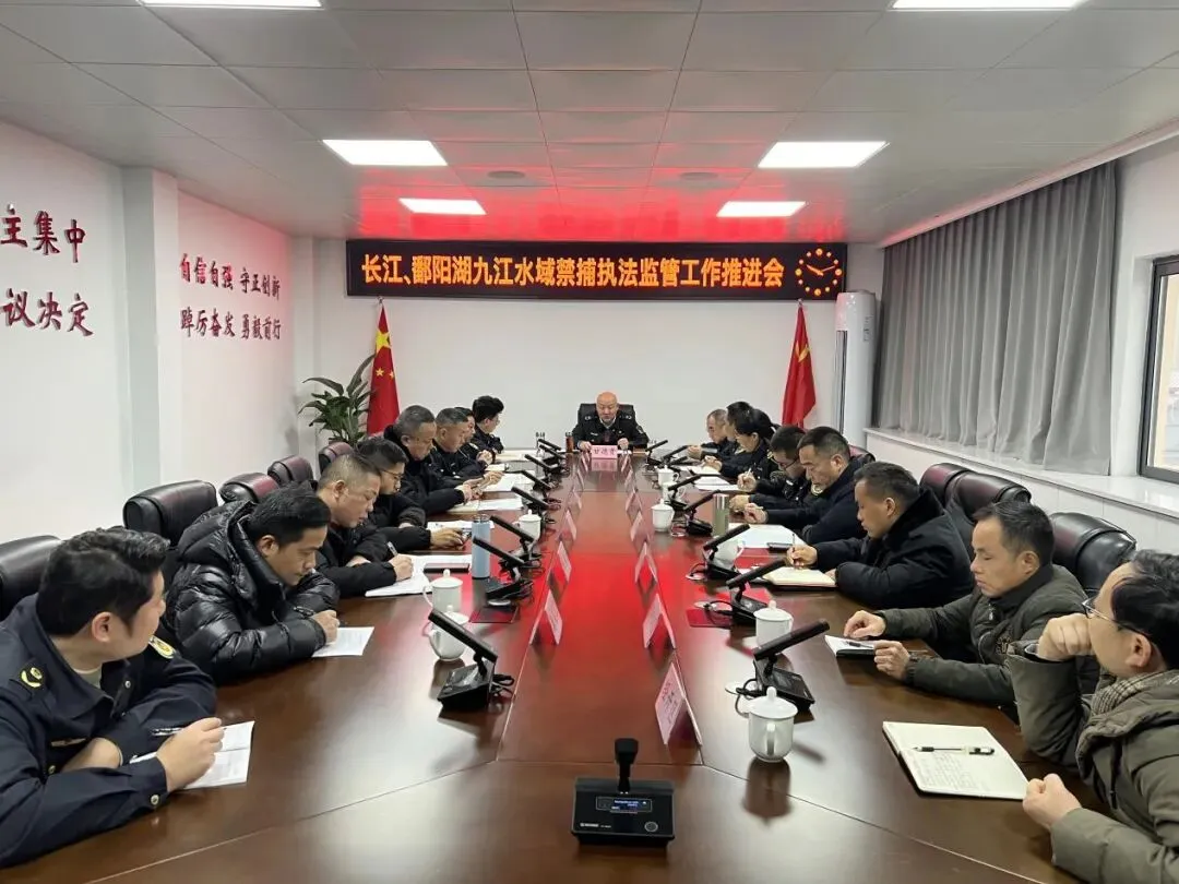 2月6日,九江市农业综合行政执法支队召开长江、鄱阳湖九江水域禁捕执法监管工作推进会,九江市农业综合行政执法支队党委书记、支队长甘德贵同志主持会议并讲话。