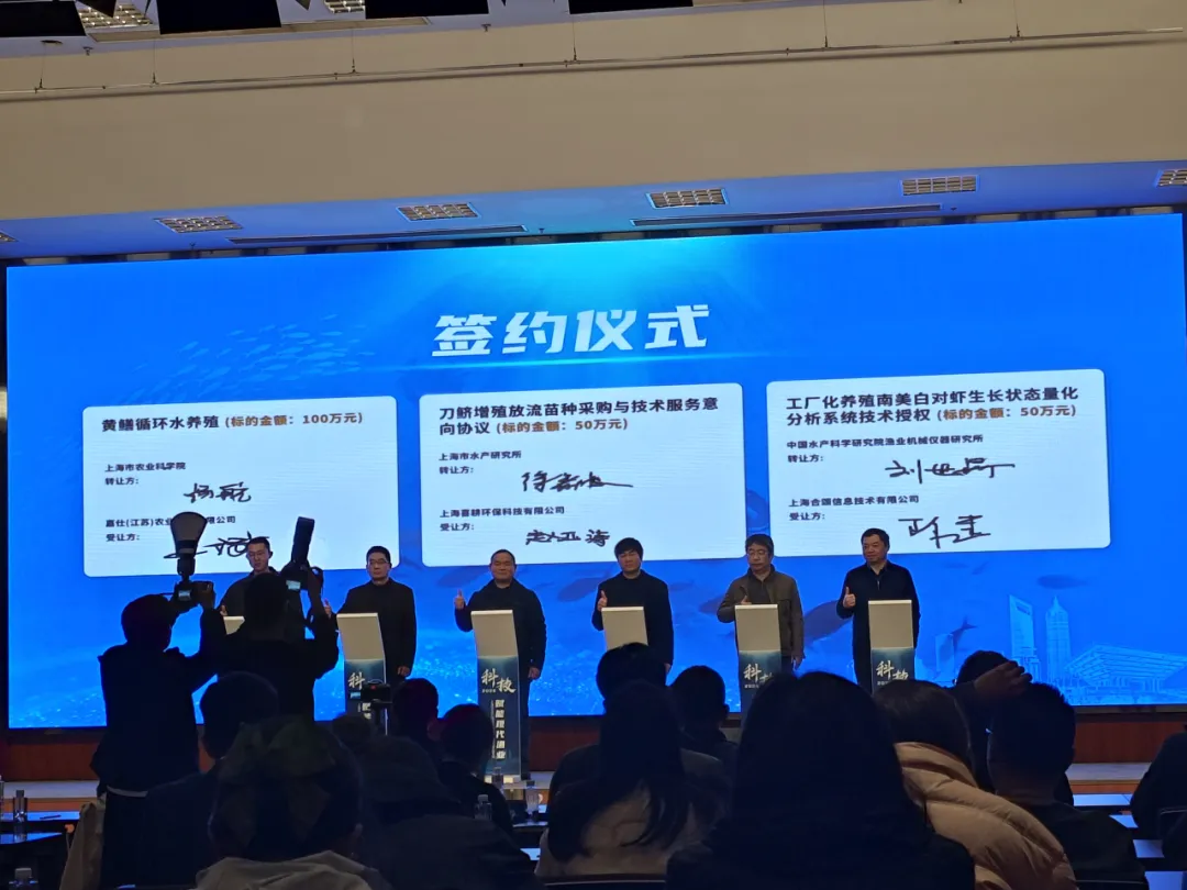 2026年3月19日,我司应邀请参加了由上海市农业科技服务中心主办的“科技赋能 现代渔业”主题上海农业科技成果的路演活动。在路演现场,我司与上海市水产研究所签署了50万元的长江刀鲚增殖放流苗种采购与技术服务意向协议。