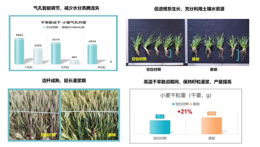 2026年超级厄尔尼诺的核心农业风险,本质是高温干旱胁迫。蒸锁通过气孔动态调控直击痛点,是应对该气候灾害、保障作物稳产的高效技术手段。