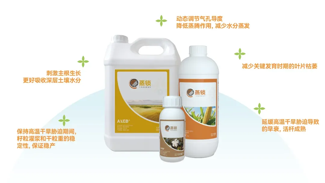 蒸锁是一款高温(干旱) 疫苗,核心成分为甾醇类物质,通过靶向调控叶片气孔开闭,实现 “旱时快关、复水后快开” 的动态平衡,精准对冲超级厄尔尼诺的核心胁迫。