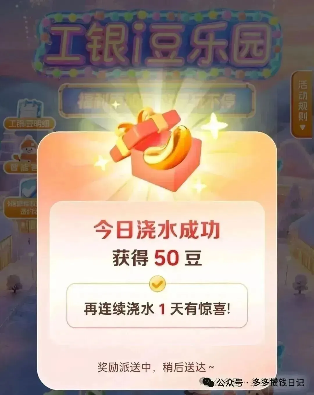 ❷每天,工行APP搜:乐园,浇水1次,50豆。