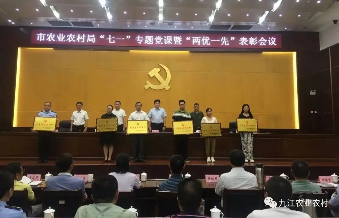 会上,宣读了《中共九江市农业农村局机关委员会关于表彰优秀共产党员、优秀党务工作者、先进基层党组织的决定》,参会领导为受表彰的2022~2023年度先进基层党组织颁奖。
