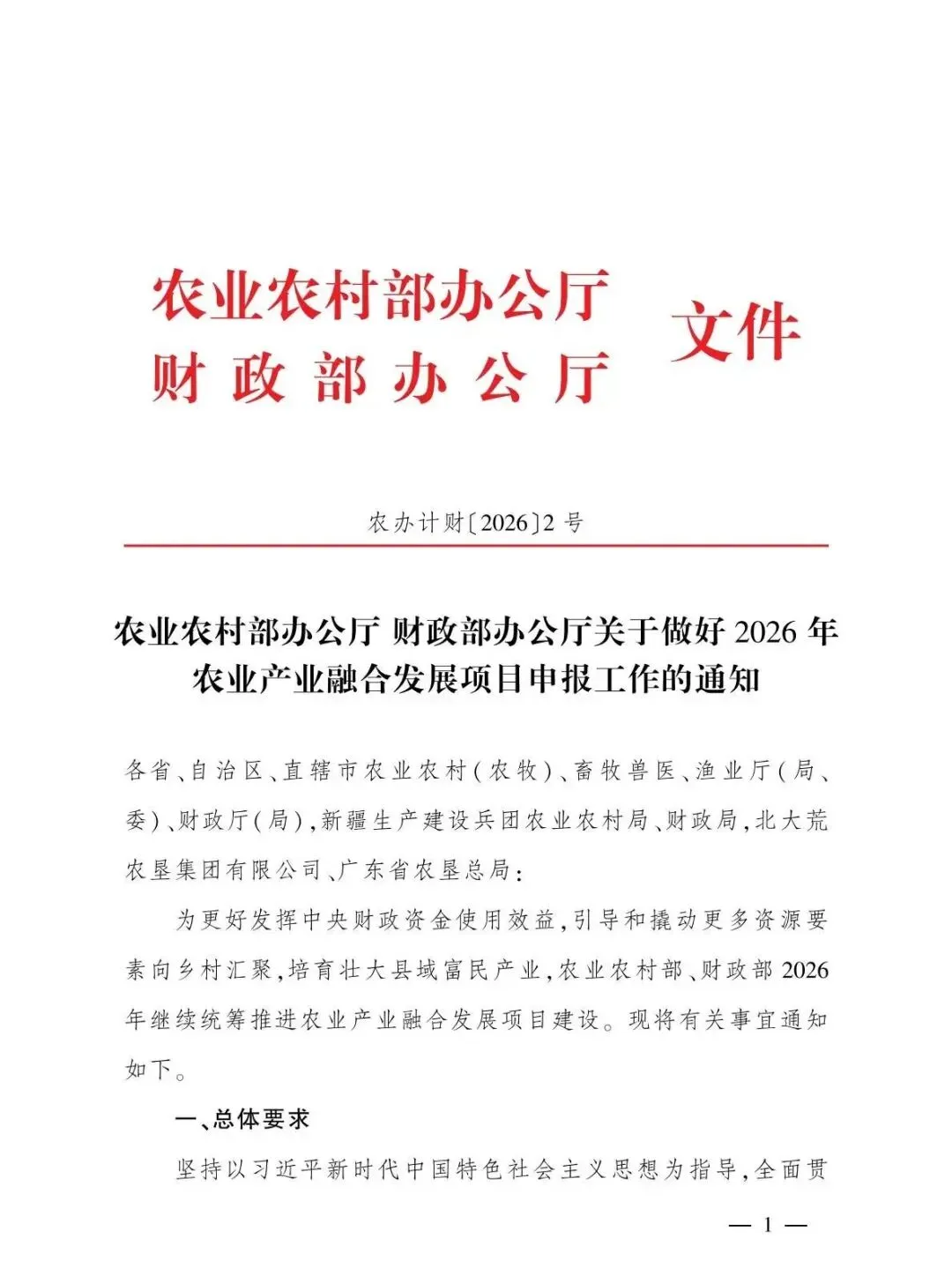 ●收藏!农业农村部发布2026年中央财政强农惠农富农政策清单