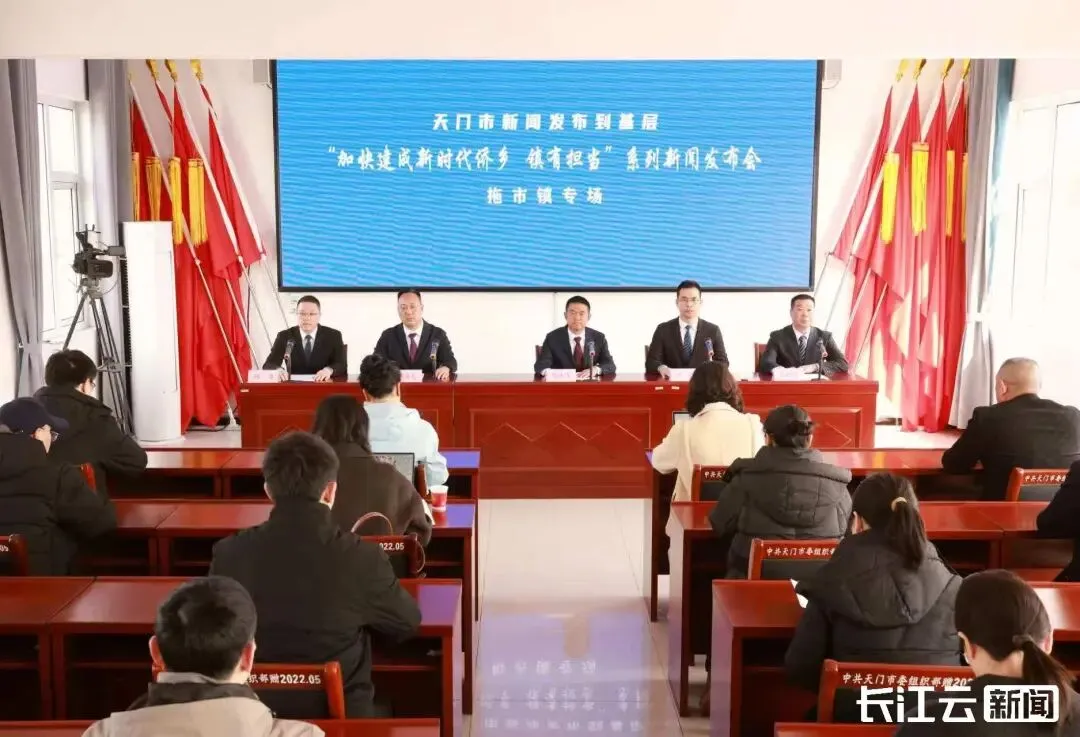 3月18日,天门市新闻发布到基层“加快建成新时代侨乡 镇有担当”系列新闻发布会第五场——拖市镇专场,在何场村顺利举行。发布会上,拖市镇党委书记周林飞全面回顾了过去一年镇域发展丰硕成果,交出沉甸甸的“五张答卷”,同时明确2026年工作方向,将以“四个支点”为抓手,全力打造天西农业强镇,为新时代侨乡建设注入拖市力量。