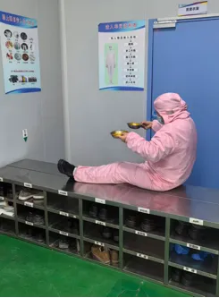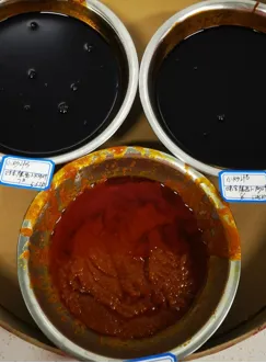 改善前:二楼炒料间会有几锅同时出料情况。测盐度时一手端一碗只能测两锅的量,上下楼梯耽误时间,效率低影响灌装时间。