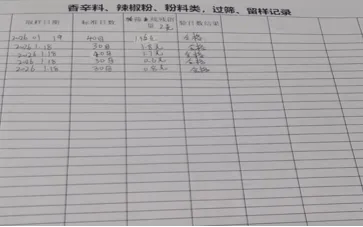 改善后:做一份记录表,详细记录香辛料,辣椒粉过筛留样详情,一天验证的产品,一目了然,方便查找。