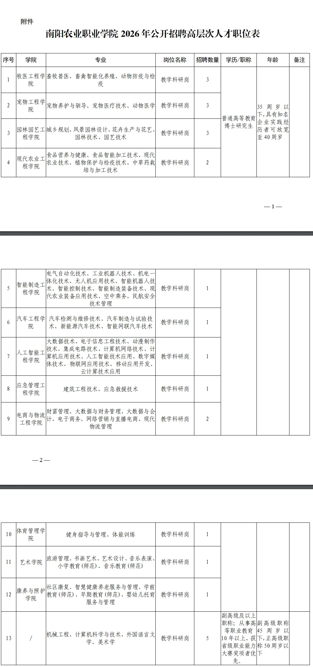 南阳农业职业学院拟面向社会招聘博士研究生及副高级以上职称人员,现将有关事项公告如下: