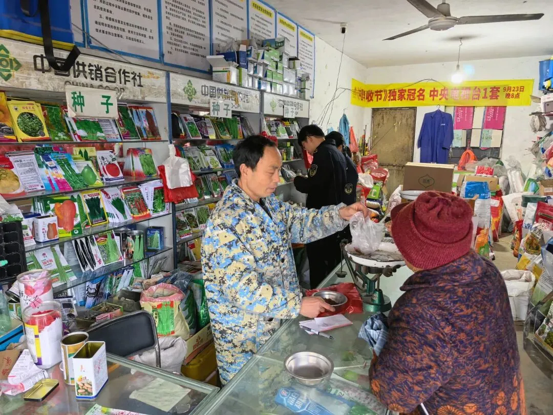 在天门镇保丰多种经营服务部,执法人员仔细查看了农资产品的进货渠道、生产日期、包装标识及质量合格证明,核查经营户的资质证照和进销货台账。逐一核查种子经营资质、品种备案情况,仔细核对种子标签标识、生产日期、产地、检验合格证明等关键信息,严厉排查假冒伪劣种子、套牌侵权、“白皮袋”种子及未审先推等突出问题,全力保障农民用上“放心种”;同时,严格核查地膜合格证、计量尺寸、生产日期等相关信息,切实守护农民群众合法权益和春耕生产安全。
