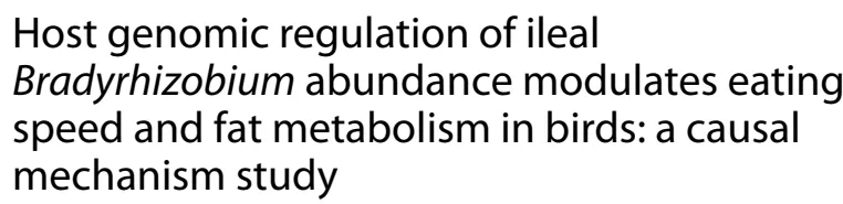 题目:宿主基因组对回肠慢生根瘤菌丰度的调控可改变鸟类的进食速度和脂肪代谢:一项因果机制研究。