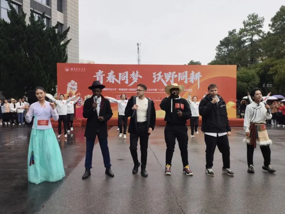 开幕式上,校领导们共同为祥龙点睛👁,象征着农耕文明薪火相传。随后,校学生社团龙狮俱乐部带来精彩的舞龙表演,一条草龙🐉在队员们的操控下盘旋舞动,时而腾空跃起,时而贴地游走,引得现场掌声不断。留学生与少数民族学子联袂演绎《龙的传人》,歌声与舞蹈交相辉映,展现了青春活力与文化交融的美好画面。
