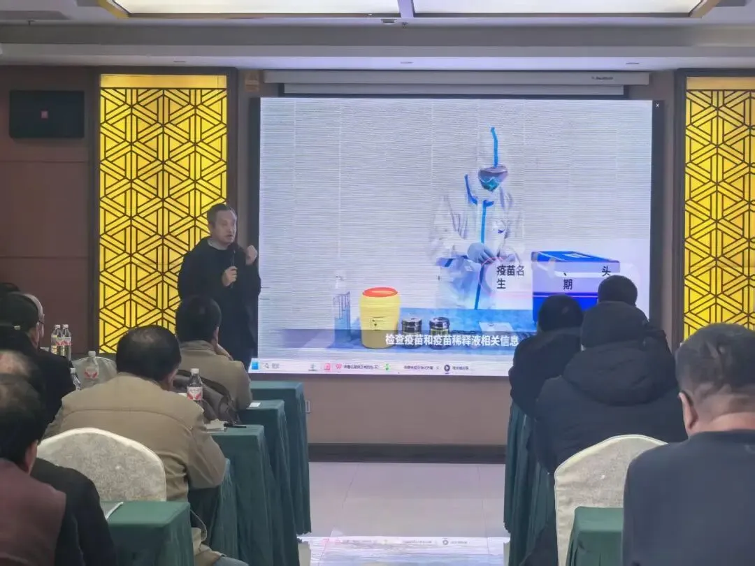 本次培训邀请行业资深专家采取理论与实操相结合的方式开展授课,内容紧扣基层养殖实际,语言通俗易懂。培训内容重点围绕布病流行病学特点、传播途径、危害风险等内容进行系统讲解。同时详细解读布病防控技术规范,重点讲解Rev.1毒株疫苗的特性、免疫程序、接种要求、禁忌事项及应急处置要点,全面提升参训人员理论水平和风险防范意识。