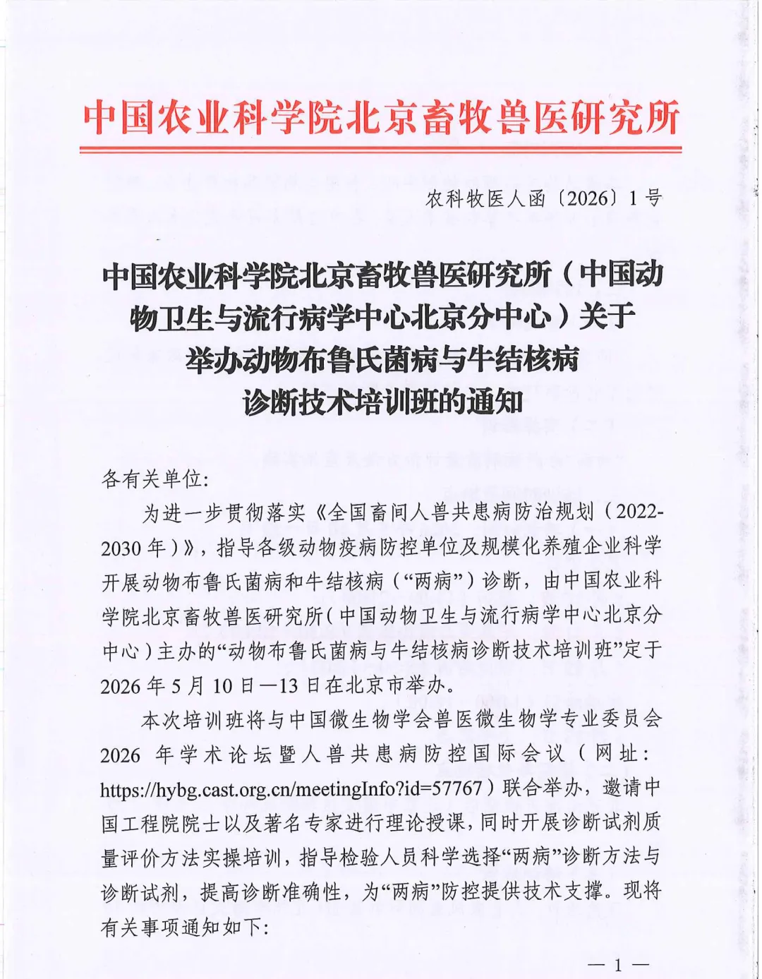 5月10日-13日,北京|中国农业科学院北京畜牧兽医研究所(中国动物卫生与流行病学中心北京分中心)动物布鲁氏菌病与牛结核病诊断技术培训班