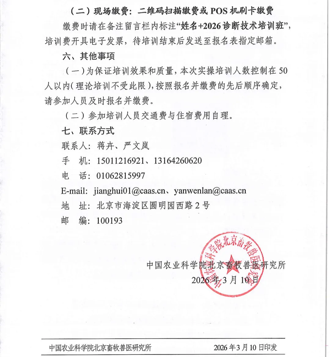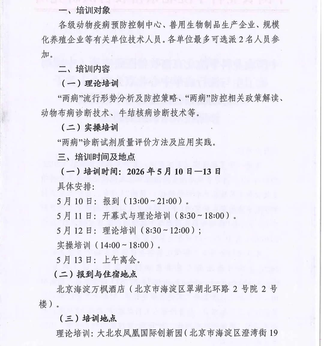 >5月10日-13日,北京|中国农业科学院北京畜牧兽医研究所(中国动物卫生与流行病学中心北京分中心)动物布鲁氏菌病与牛结核病诊断技术培训班