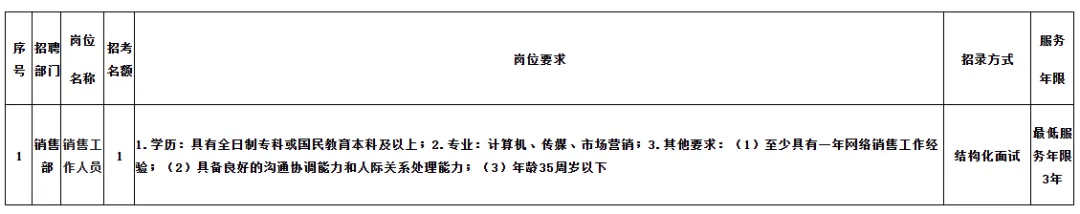 本次面向社会公开招聘工作人员1名。招聘岗位及名额具体情况详见《屏山县振和农业开发有限公司2026年第一次统一招聘工作人员岗位表》(附件1)。