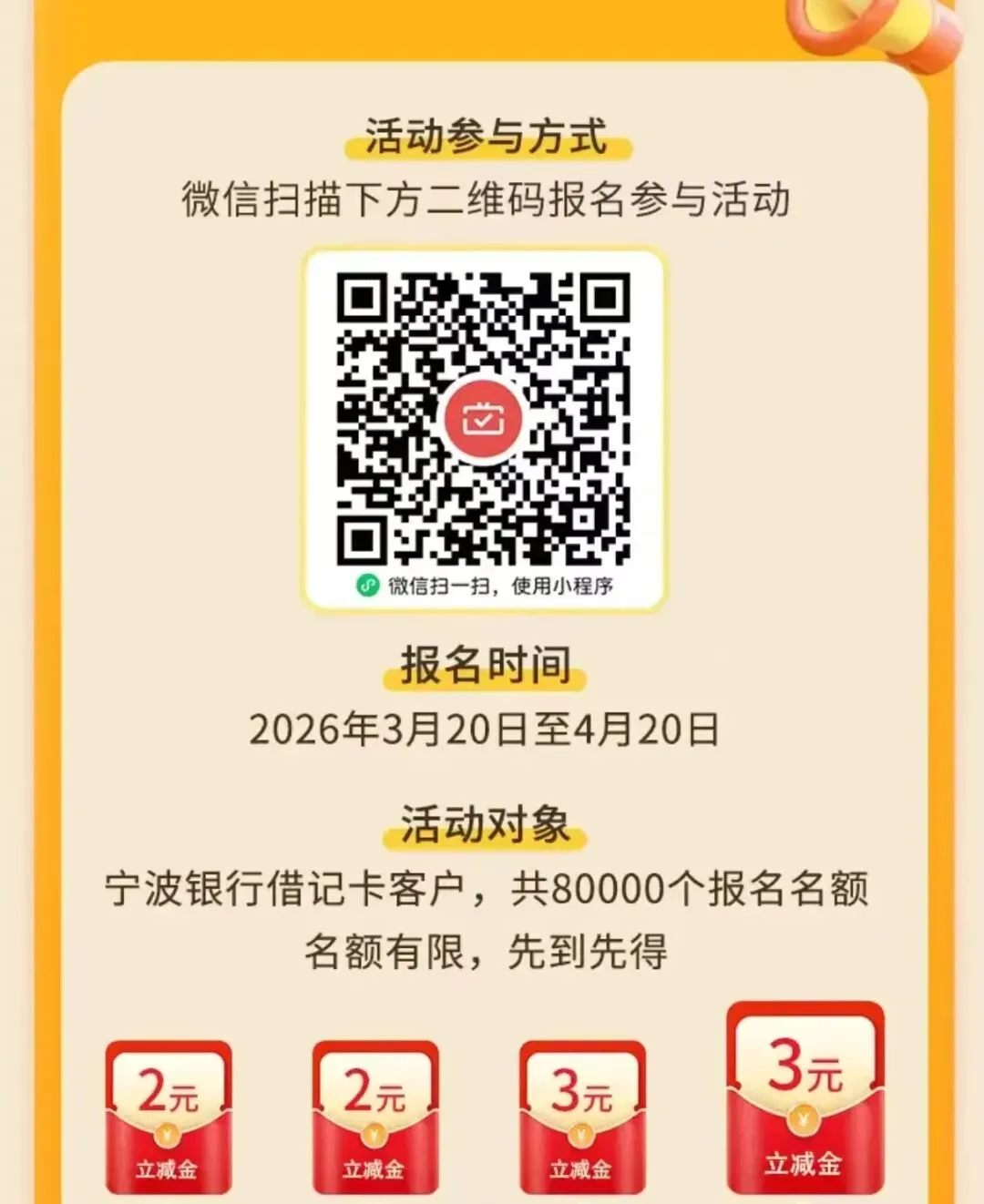 扫码报名,先领2元立减金