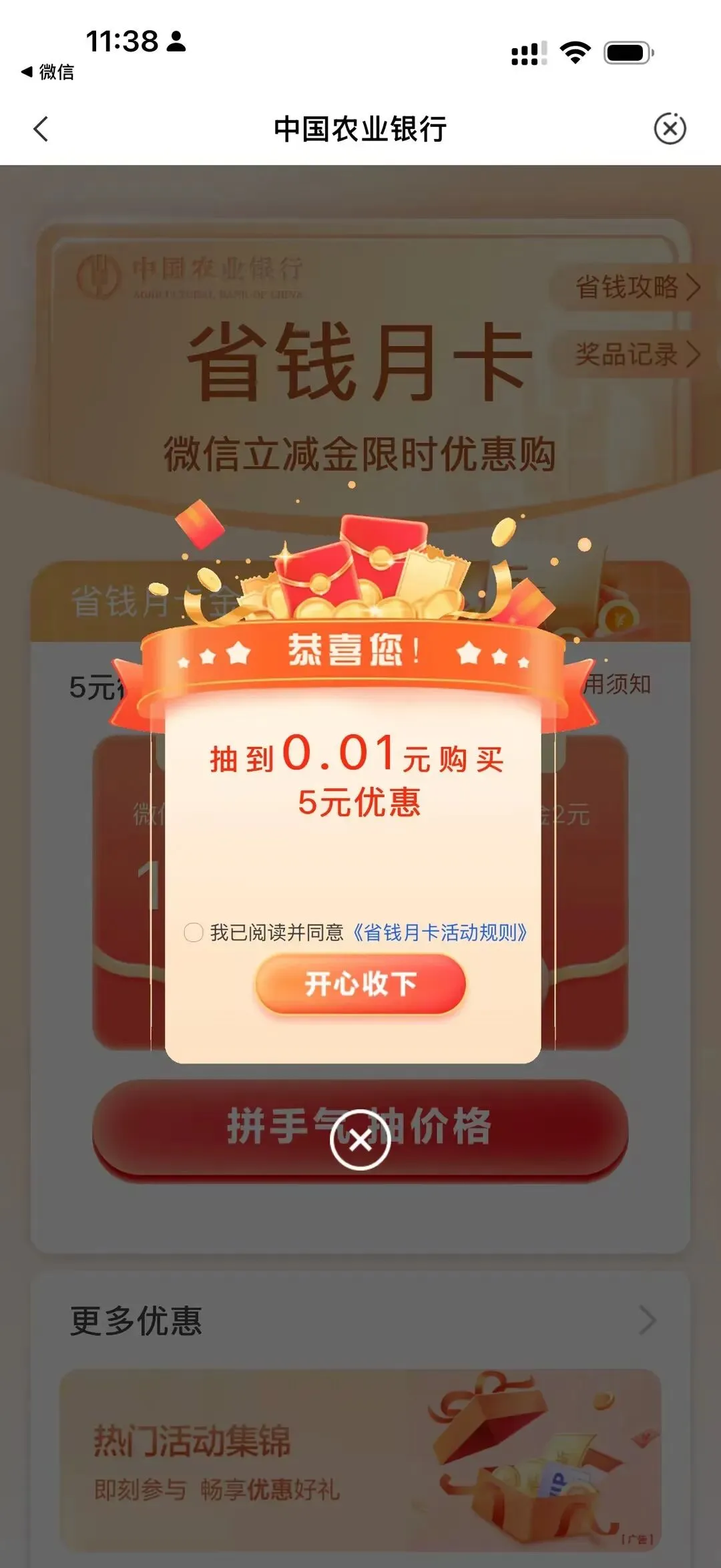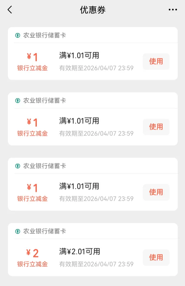仅限2026年3月这几天有效,农行立减金0.01买5+5+5,WV+5,ZFB+5,DY+5,共15💰