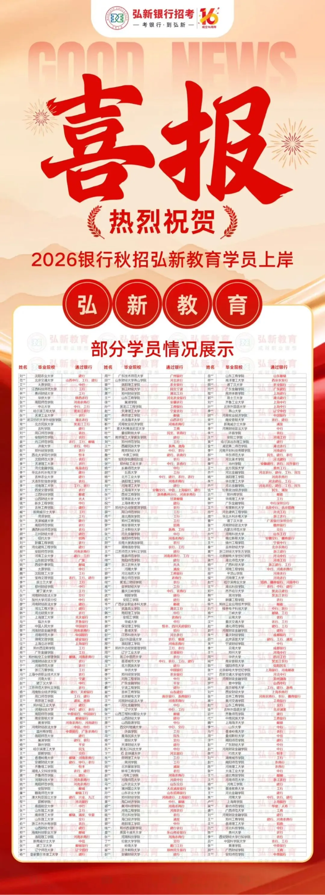 弘新教育学员26秋招上岸展示下图仅为部分上岸学员展示
