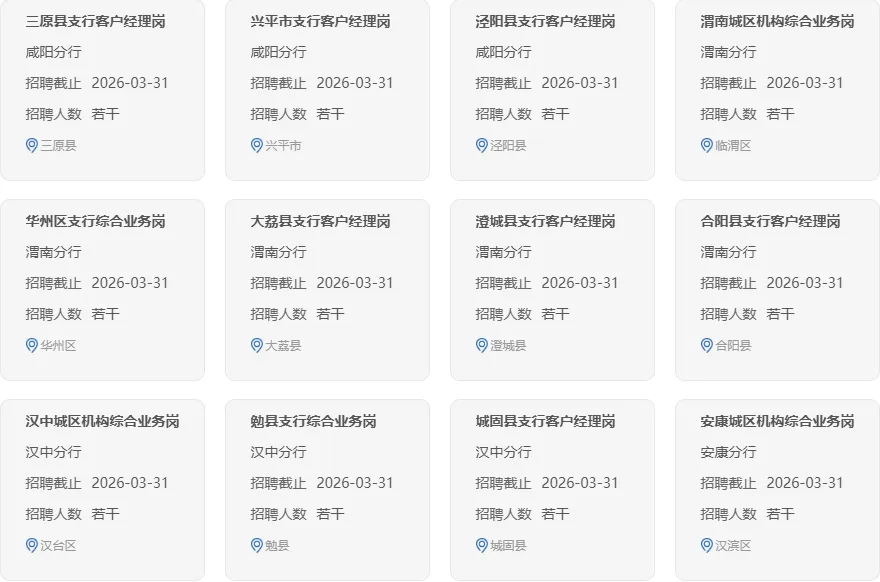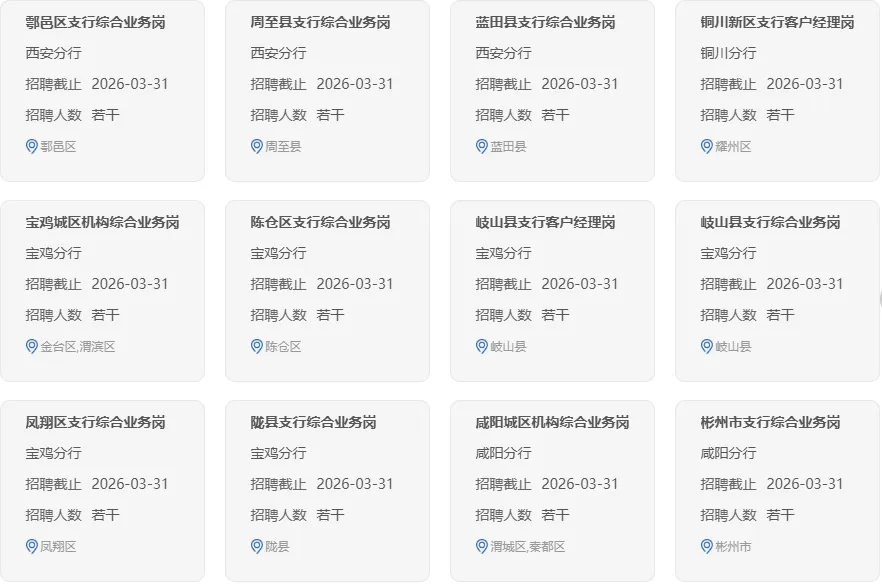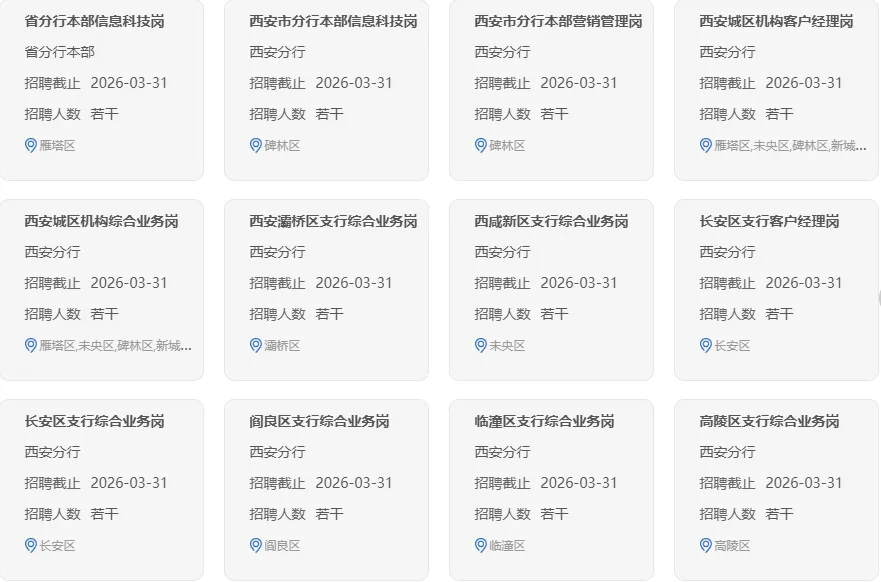 各岗位的工作职责、应聘条件和具体要求见中国农业银行招聘网站岗位详情。