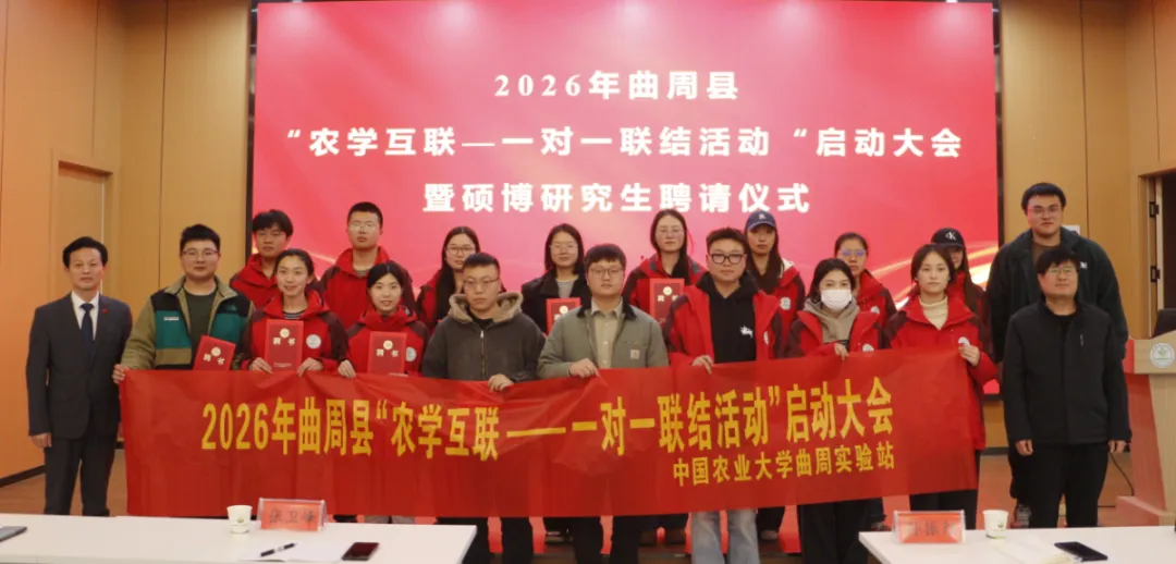 中国农大新闻网讯 为推动 2026 年冬小麦春季科学水肥管理建议落地实施,精准助力曲周全县“绿色吨半粮”小麦春管,3月13日下午,2026 年曲周县春季服务种粮大户培训会在学校曲周实验站举办,并启动曲周县首届“农学互联 一对一联结”活动。