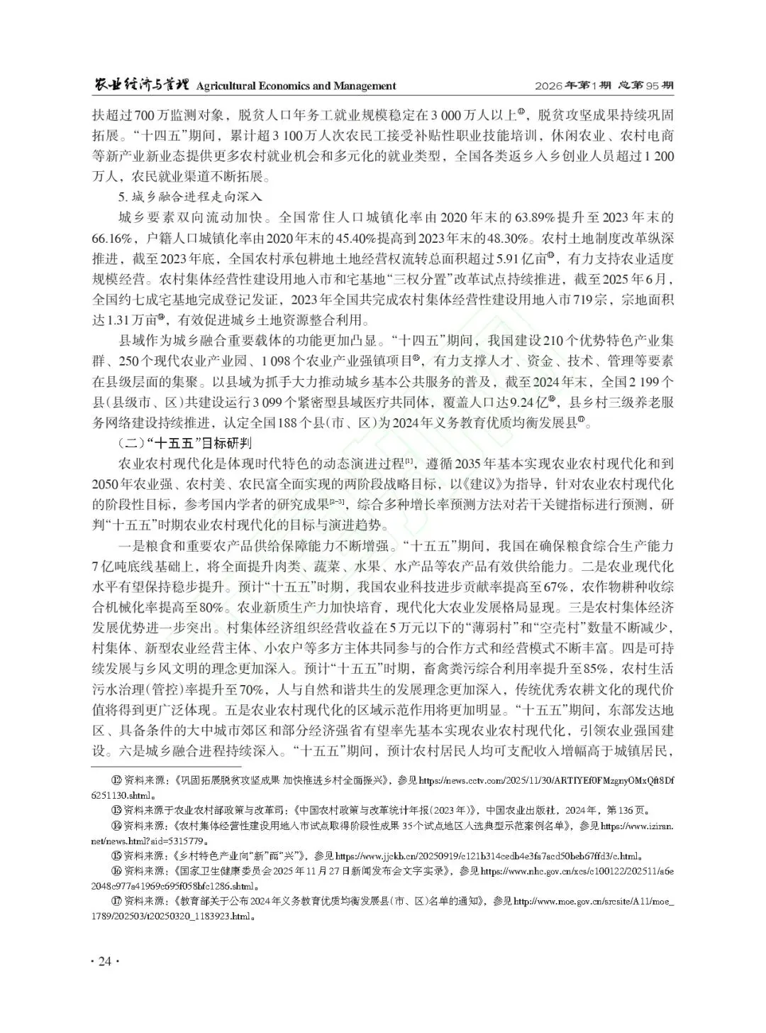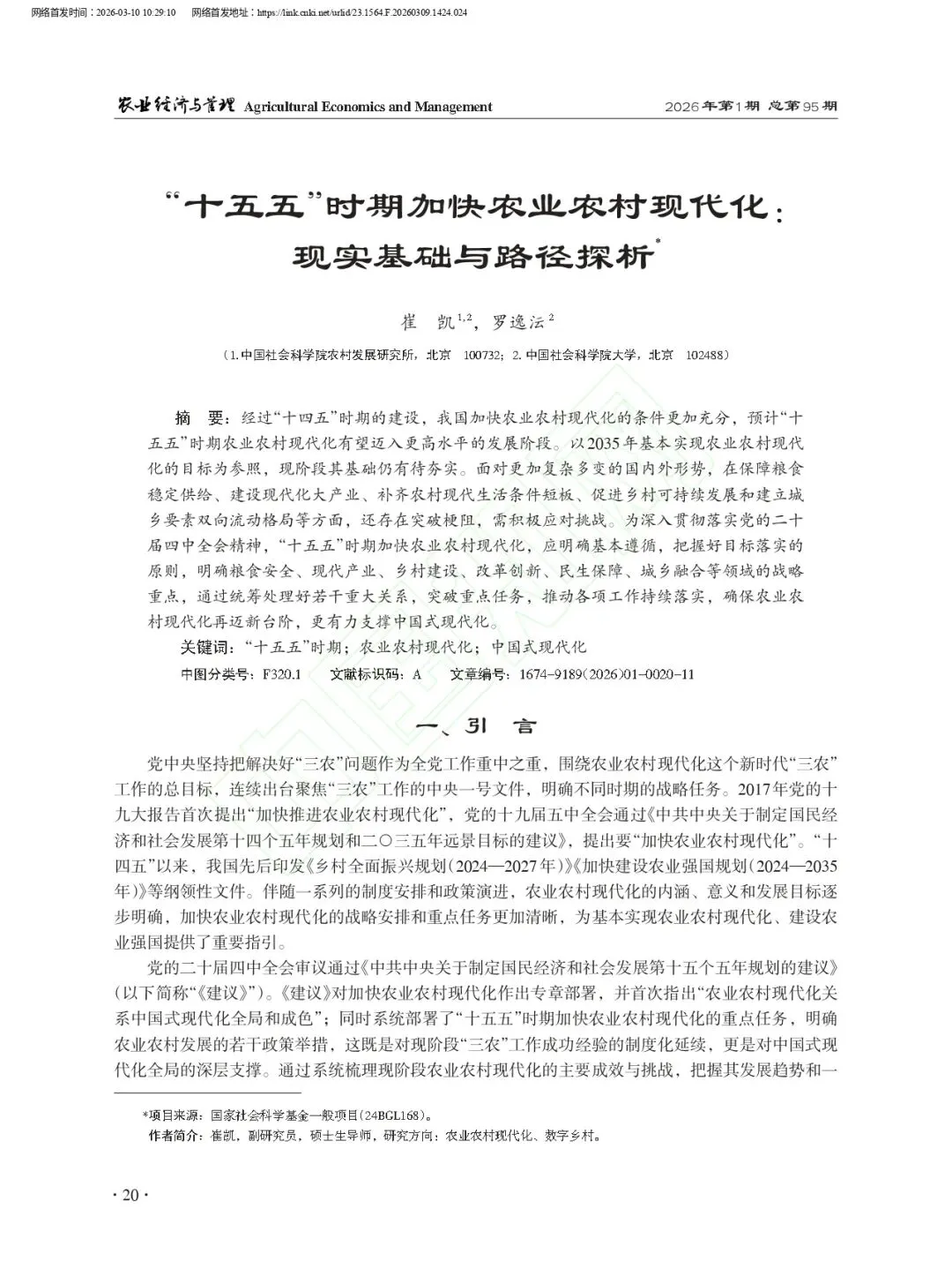 本文载于《农业经济与管理》2026年1月第1期/总第95期“十五五”时期加快农业农村现代化:现实基础与路径探析崔凯 罗逸沄