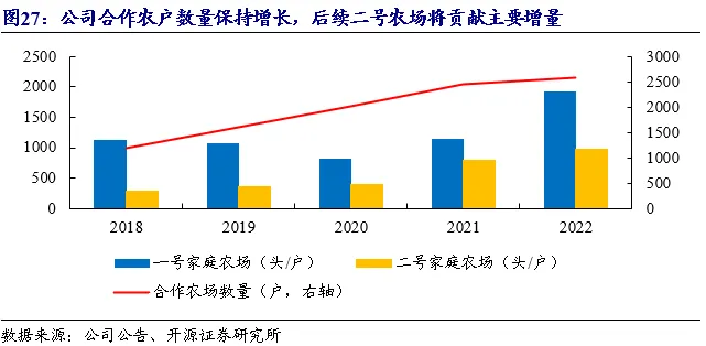 风险提示:畜禽产品价格波动超预期、原材料价格超预期上涨、动物疫病风险。1、 二号农场”引领行业代养趋势,成本下降与出栏放量路径明确