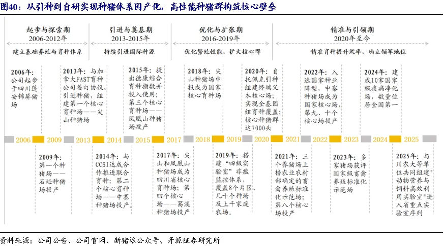 3.1、 育种历程:引种到自研实现种猪体系国产化,高性能种猪群构筑核心壁垒