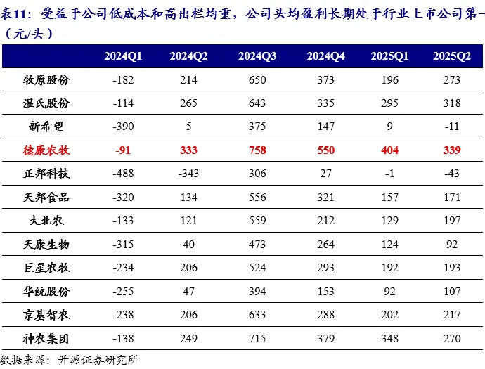 盈利能力行业领先:受益于公司低成本和高出栏均重,头均盈利能力行业领先。西南地区为公司主要产销地区,偏好大体型肥猪,且地区传统饮食习俗创造较大的季节性生猪需求,生猪销售单价通常较高,体型较大。公司头均盈利能力常年位居行业前列,在以下12家主要上市公司中,公司2025Q2头均盈利339元,排名第一。在地区消费偏好、传统饮食习惯影响下,公司高出栏均重及季节性高单价有望继续保持。