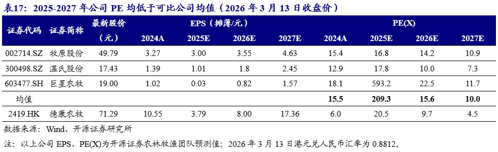 本报告摘自:《开源证券_开源证券_公司首次覆盖报告_德康农牧(2419.HK)_模式与育种共筑壁垒,出栏放量成本下降路径清晰_农林牧渔团队_20260319》分析师:陈雪丽 证书编号:S0790520030001《证券期货投资者适当性管理办法》于2017年7月1日起正式实施。通过微信形式制作的本资料仅面向开源证券客户中的境内金融机构专业投资者,请勿对本资料进行任何形式的转发行为。若您并非开源证券客户中的境内金融机构专业投资者,为保证服务质量、控制投资风险,请勿订阅、接收或使用本订阅号中的信息。本资料难以设置访问权限,若给您造成不便,还请见谅!感谢您给予的理解和配合。若有任何疑问,请与我们联系。