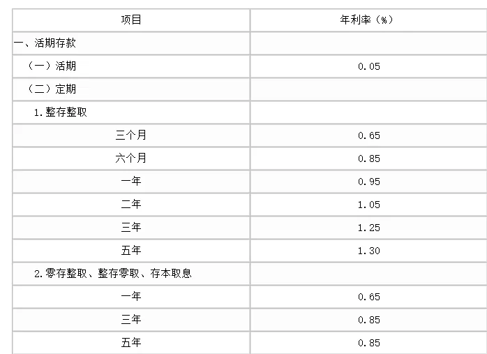 协定存款:0.10%;通知存款:一天0.10%,七天0.30%,