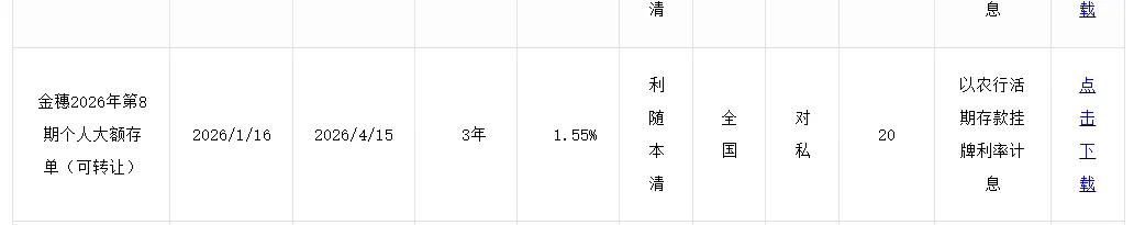 很多人会问,大额存单利率更高,30万能买吗, 农行2026年3月在售的大额存单,是金穗2026年第7、8期个人大额存单,可转让,利随本清,全国对私发售,起存金额20万,