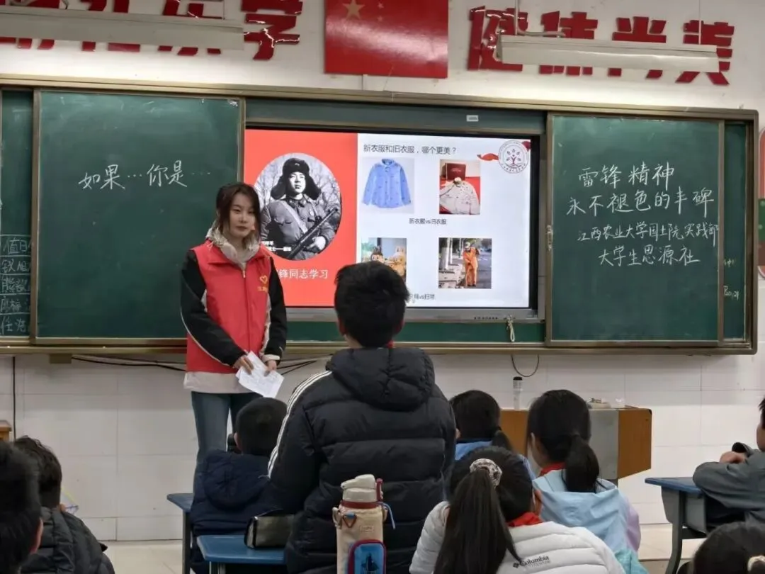 2026年3月20日下午,由江西农业大学国土学院团委、附中团总支联合主办,国土院团委实践部、思源社承办的雷锋主题活动,走进农大附中为六年级一班、二班的同学们开展“薪火相传学雷锋 同心筑梦向前进”为主题的雷锋精神宣讲活动。