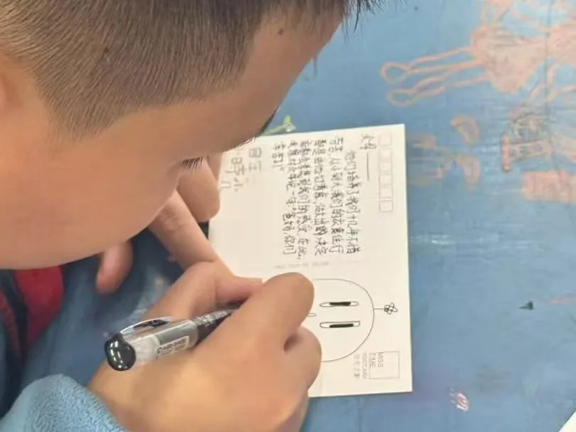 主题宣讲结束后,志愿者带领同学们开展趣味互动游戏,将感恩教育融入欢乐体验中。在“感恩明信片”环节,同学们认真写下对父母、老师与同学的感谢与祝福,真挚温暖。不少同学主动上台分享,稚嫩真诚的话语打动了在场每一位志愿者。