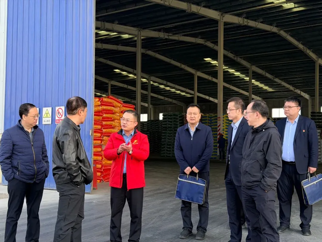 董行长一行先后深入生产车间、成品库房等地,实地察看公司生产运营、技术创新、产能保障等情况。刘总围绕项目建设进度、春耕化肥稳产保供、新型肥料研发及产业链整体布局等方面作了详细介绍。双方围绕金融赋能化肥保供、助力春耕生产、服务乡村振兴等深入交流。
