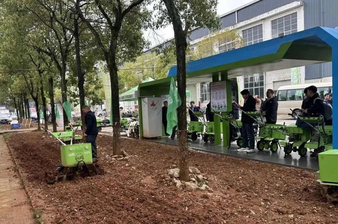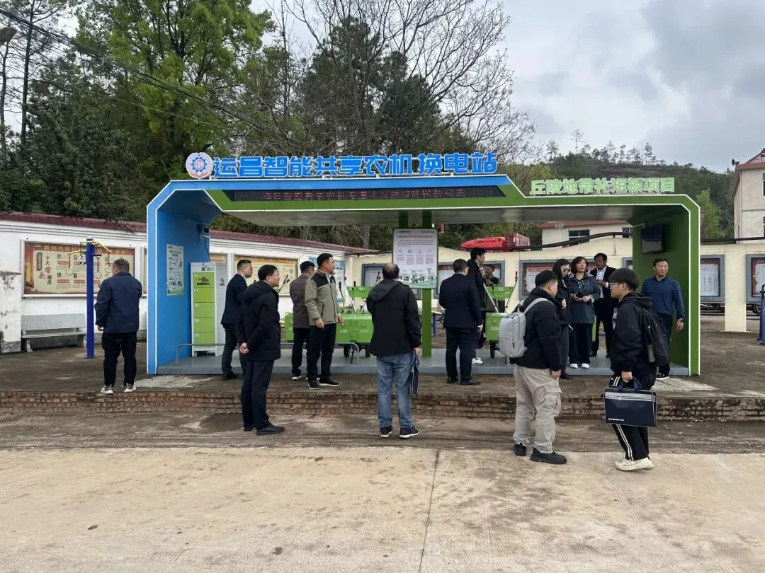随后,嘉宾们专程前往石燕村运昌新能源共享农机驿站实地考察。作为运昌智能农机服务终端延伸的创新模式,该驿站通过“共享农机”理念,有效破解丘陵山区农户“买不起、用不好、修不起”的难题。嘉宾们详细了解了驿站运营模式及农户反馈,对这一扎根基层的创新实践表示高度赞赏。