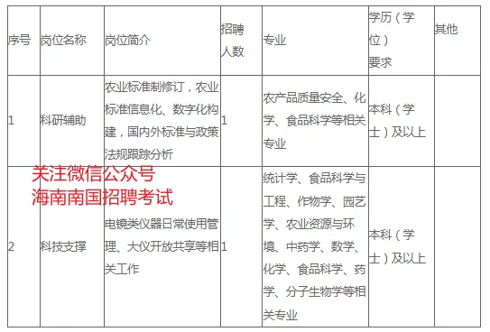 中国热带农业科学院分析测试中心为农业农村部直属的科研事业单位。为更好地开展工作,受中国热带农业科学院分析测试中心委托,第三方公司拟通过公开招聘2名劳务派遣人员至中国热带农业科学院分析测试中心工作。现将有关事项公告如下: