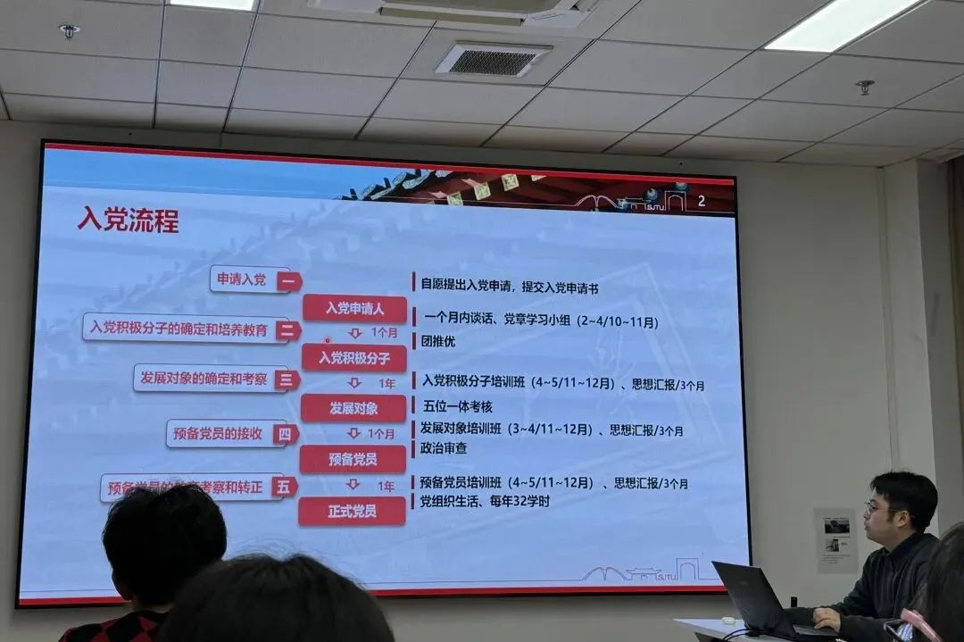 流程讲解环节结束后,由张维新为全体同学讲授了一堂内容详实、深入浅出的《党章》专题辅导课。他紧扣《中国共产党章程》的篇章脉络,对党的性质、根本宗旨、指导思想、组织原则以及党员的权利义务等核心内容进行了系统梳理与深入解读。
