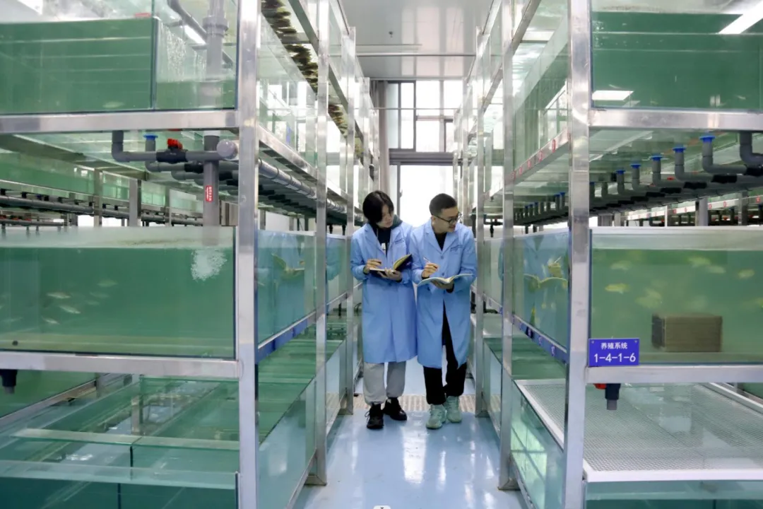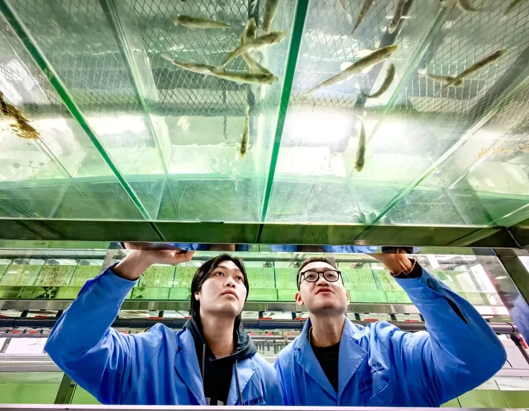 ▲研究团队查看实验鱼繁育情况。雷键 摄