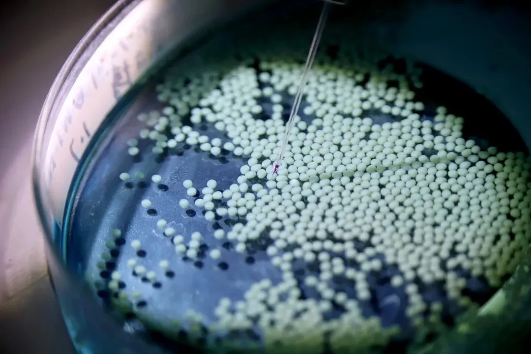 ▲研究团队对鱼卵进行处理。雷键 摄