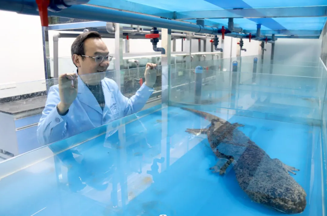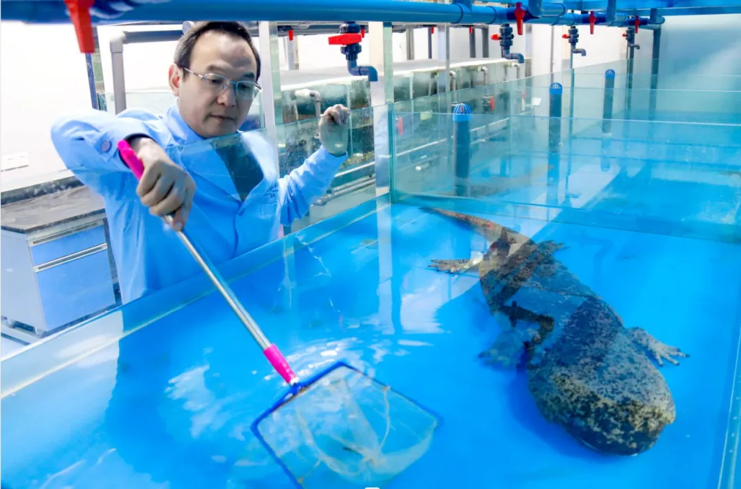 ▲研究团队养殖的大鲵。雷键 摄