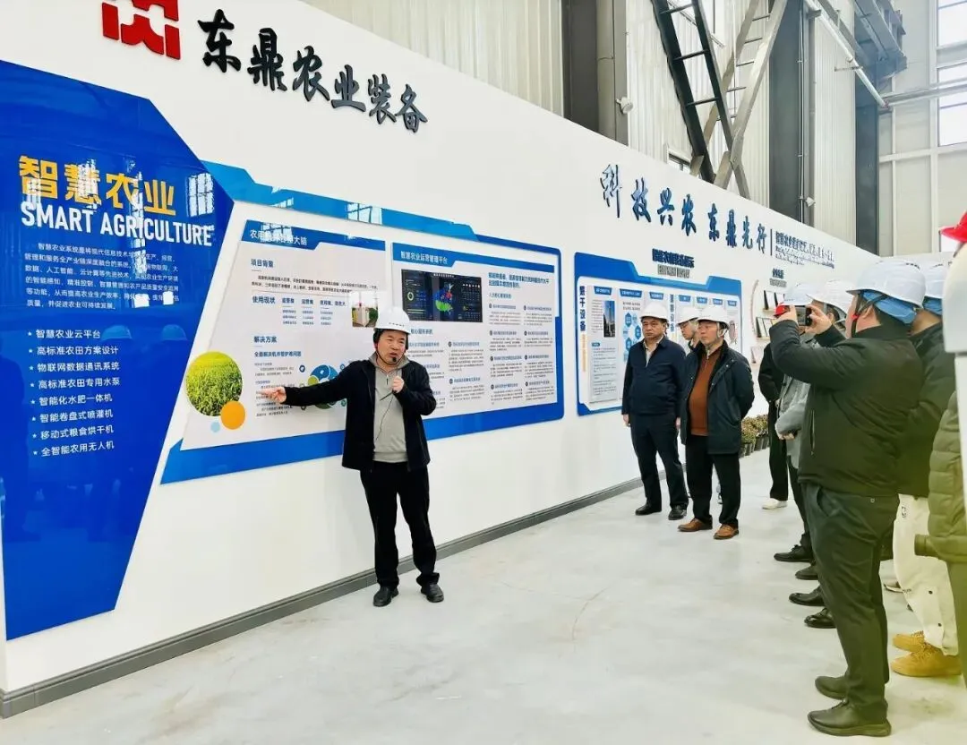 校友们首先参观了河南东鼎农业装备有限公司的生产基地,实地了解企业在高端农业装备领域的制造流程与技术创新成果。从高标准农田专用水泵到水肥一体机,从卷盘式喷灌机到粮食烘干机,企业以智能制造赋能现代农业的实践给参访校友留下了深刻印象。