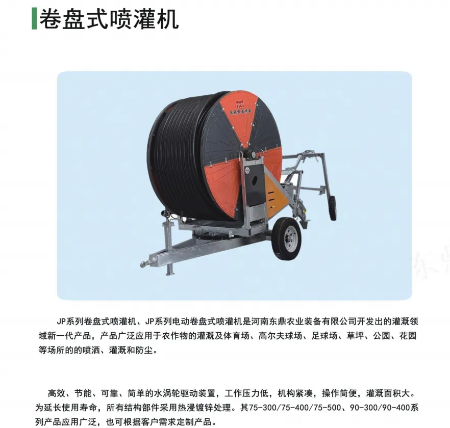 河南东鼎农业装备有限公司是一家专业生产高端农业装备的高新技术企业。公司研发生产的高标准农田专用水泵、水肥一体机、卷盘式喷灌机、粮食烘干机等产品深受国内外用户好评。公司在郑州、杭州有60多人的专业研发团队,在浙江、江苏、河南有多家生产基地,公司以技术创新为弓擎,引入6S管理准则,通过优良的制造平台,完善的检测手段,优质的服务体系,为客户提供优质高效的产品技术服务。