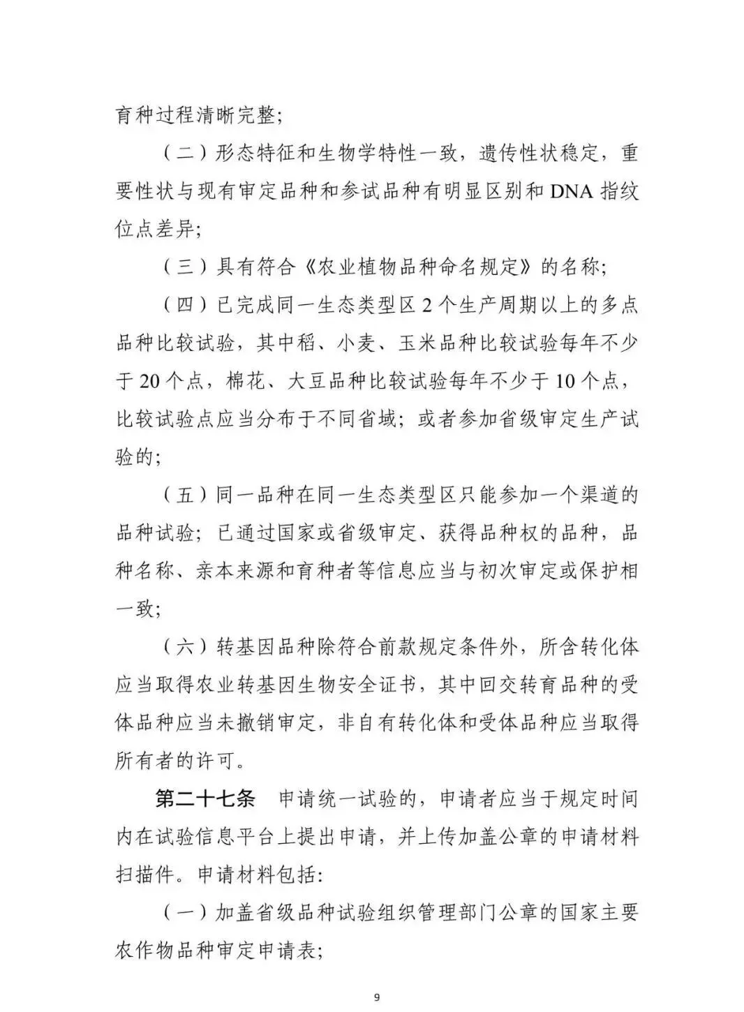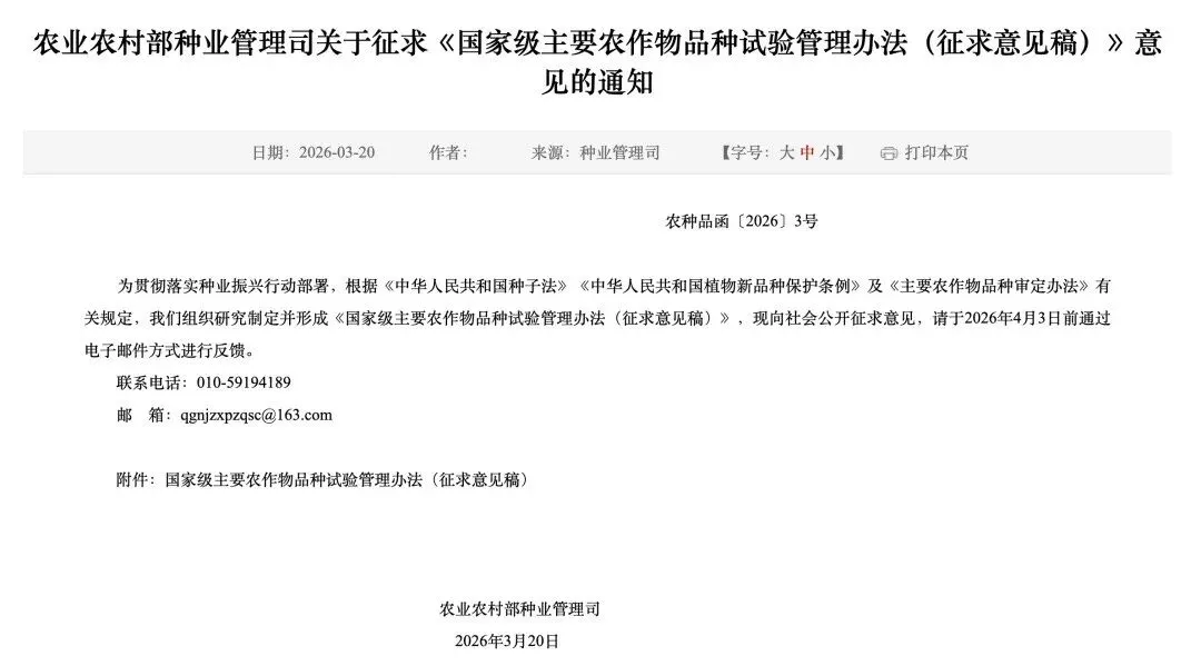 【国科新政声】农业农村部:国家级主要农作物品种试验管理办法(征求意见稿)
