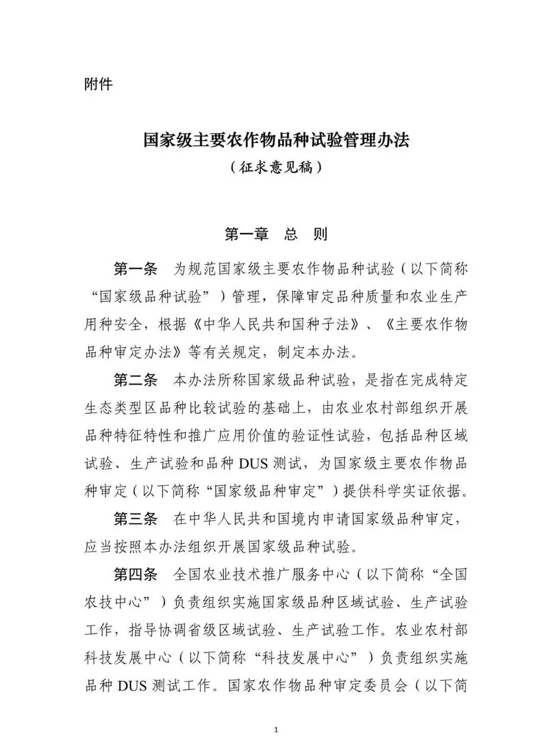 >【国科新政声】农业农村部:国家级主要农作物品种试验管理办法(征求意见稿)